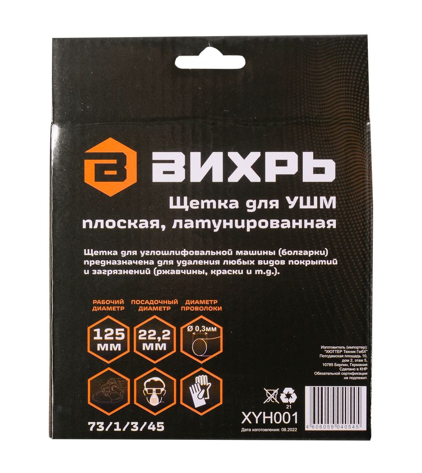 посадочный Ø: 22.2 мм, Ø щётки: 125 мм, Ø проволоки: 0.5 мм, макс: 4 500 об/мин