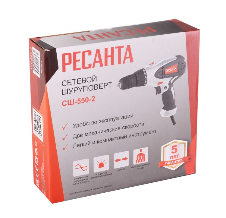 Сетевой шуруповерт Ресанта СШ-550-2 - функциональный электроинструмент с регулируемым крутящим моментом, предназначен для закручивания и откручивания шурупов, саморезов, винтов, дюбелей и других видов крепежных изделий, а также для сверления отверстий в различных материалах в быту и промышленности. Работает от электросети 220-230В.