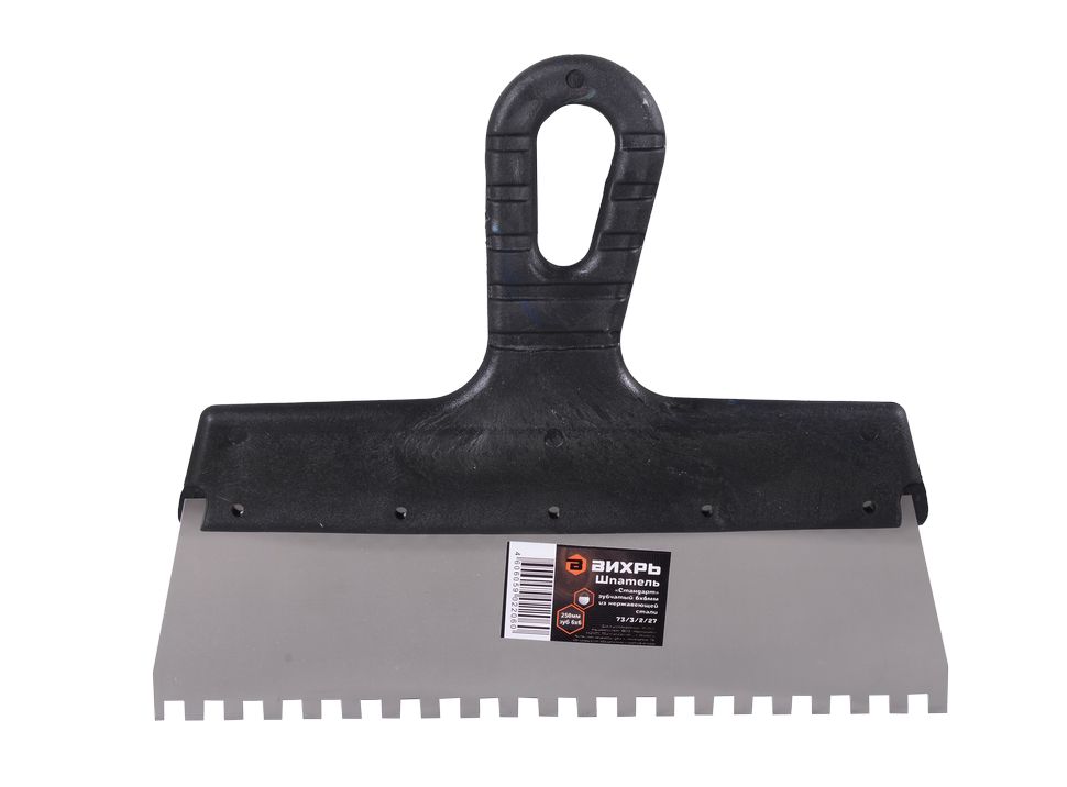 Шпатель ВИХРЬ 6х6 мм, зубчатый, нержавейка, пластик, 250мм