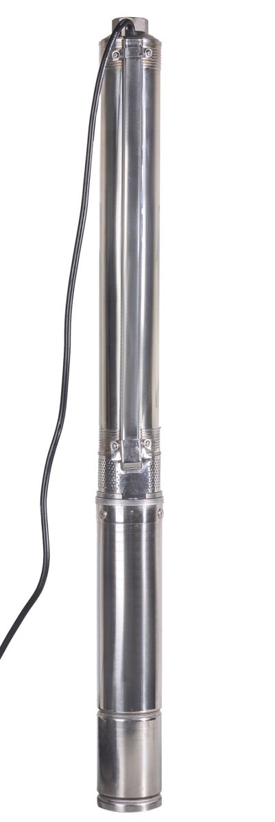 Устройство отличается конструктивными особенностями, характерными для насосного оборудования данного типа. Внутри корпуса из нержавейки расположены электродвигатель мощностью 800 Вт и блок с импеллерами, изготовленными из прочного пластика. Забор производится посередине: между данным блоком и мотором. Скважинный насос имеет высокую производительность - до 50 л/мин. Он может обеспечивать подъем воды на высоту до 60 м, при этом в ней допускаются примеси песка, содержание которого может достигать 180 г/м³. Температура перекачиваемой жидкости не должна превышать +35 градусов. Класс защиты данного устройства – IPX8: оно может работать длительное время при полном погружении без риска поломки. Модель имеет тепловую защиту, которая срабатывает при пересыхании источника или перегрузке агрегата. Термореле выключает двигатель, чтобы избежать возможного выхода из строя.