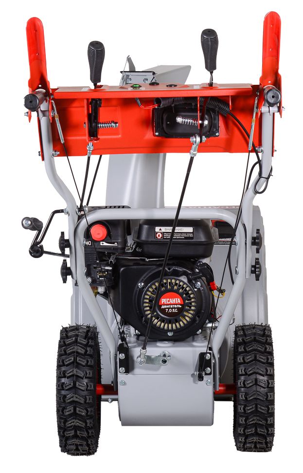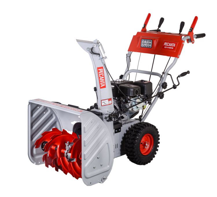 Рабочая система снегоуборщика Ресанта представляет собой снегозаборный желоб со шнеком, а также вентилятор в форме крыльчатки и желоб для выброса снега. Агрегат приводится в действие четырехтактным поршневым одноцилиндровым бензиновым двигателем внутреннего сгорания с воздушным охлаждением.