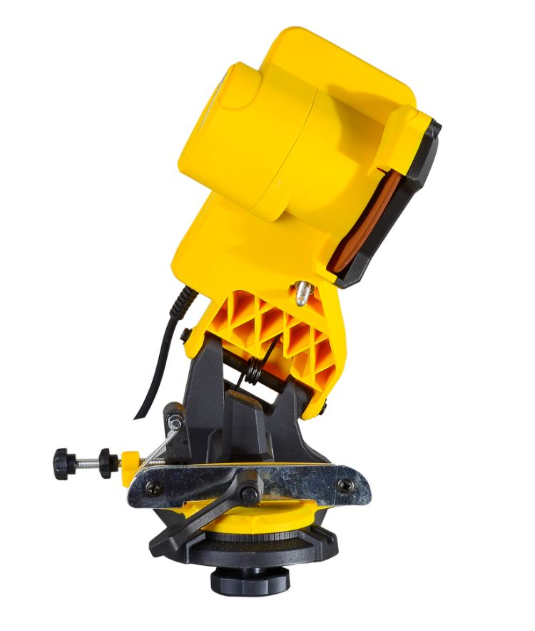 - Есть удобный зажим, повышающий скорость заточки цепи.