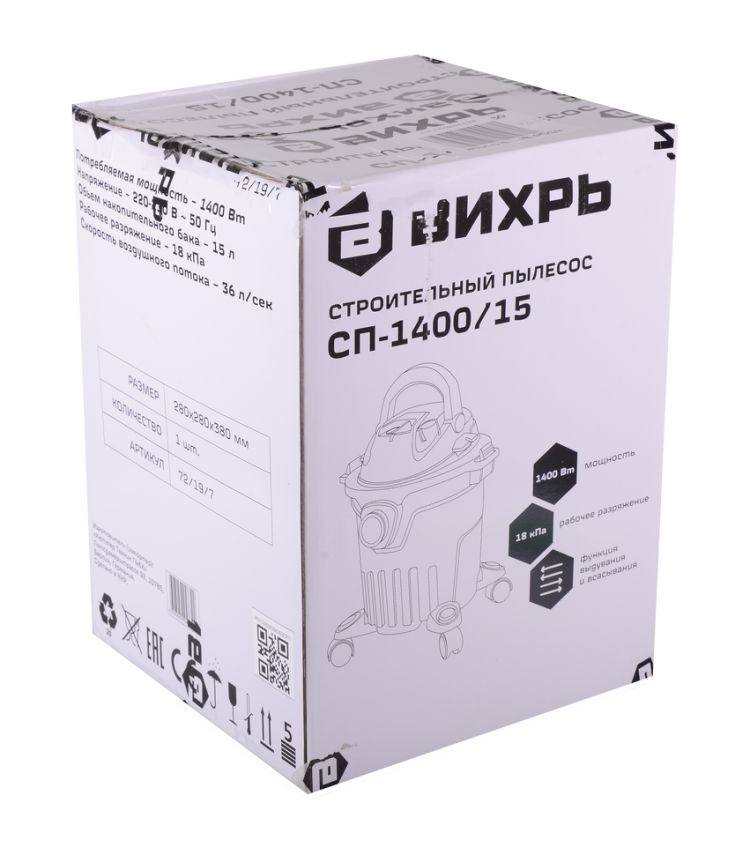 Строительный пылесос Вихрь СП-1400×15 – уборка без компромиссов
