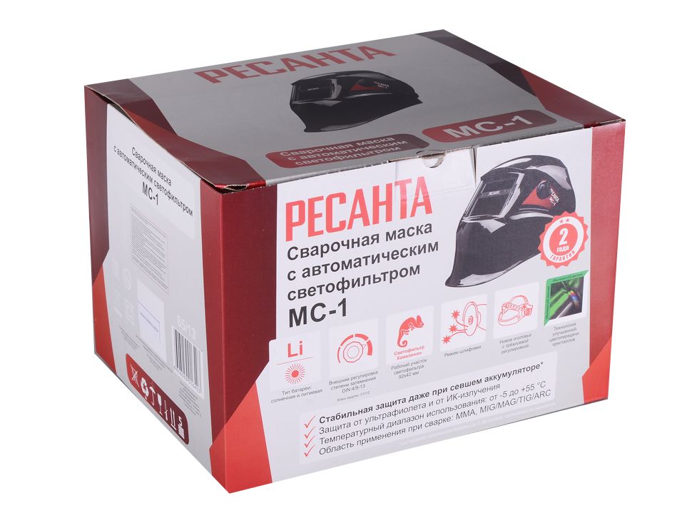 Смотровое окно - 92х42 мм, хамелеон, темное состояние (DIN) – 9-13, светлое – 4, переключение – 1.2 мс, задержка открытия – 0,1-0,6 с