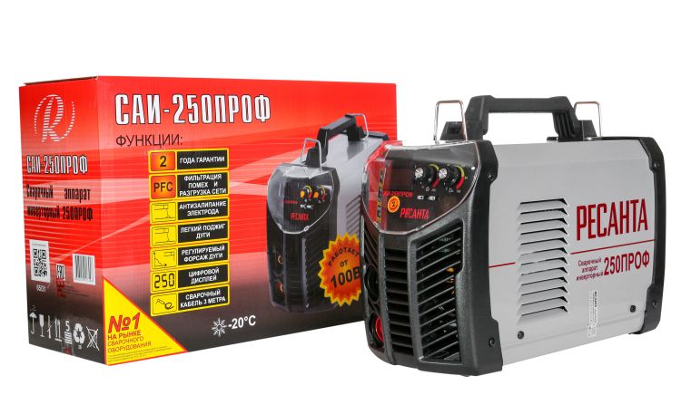 Сварочный аппарат инверторный серии ПРОФ «Ресанта» предназначен для ручной дуговой сварки штучным покрытым электродом на постоянном токе и электродом с рутиловым и основным покрытием (режим ММА) в том числе при пониженном напряжении.