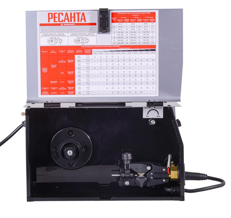 Встроенная защита от перегрева защищает агрегат от поломки. Можно регулировать скорость подачи проволоки и сварочный ток, что позволяет добиться высокого качества сварного соединения.