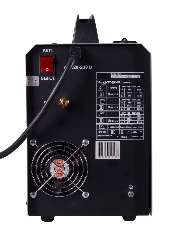инвертор, полуавтомат, MMA, MIG/MAG, 220 В, 15 – 200 А, ПВ - 70%, Ø - 0,6/0,8/1,0 мм