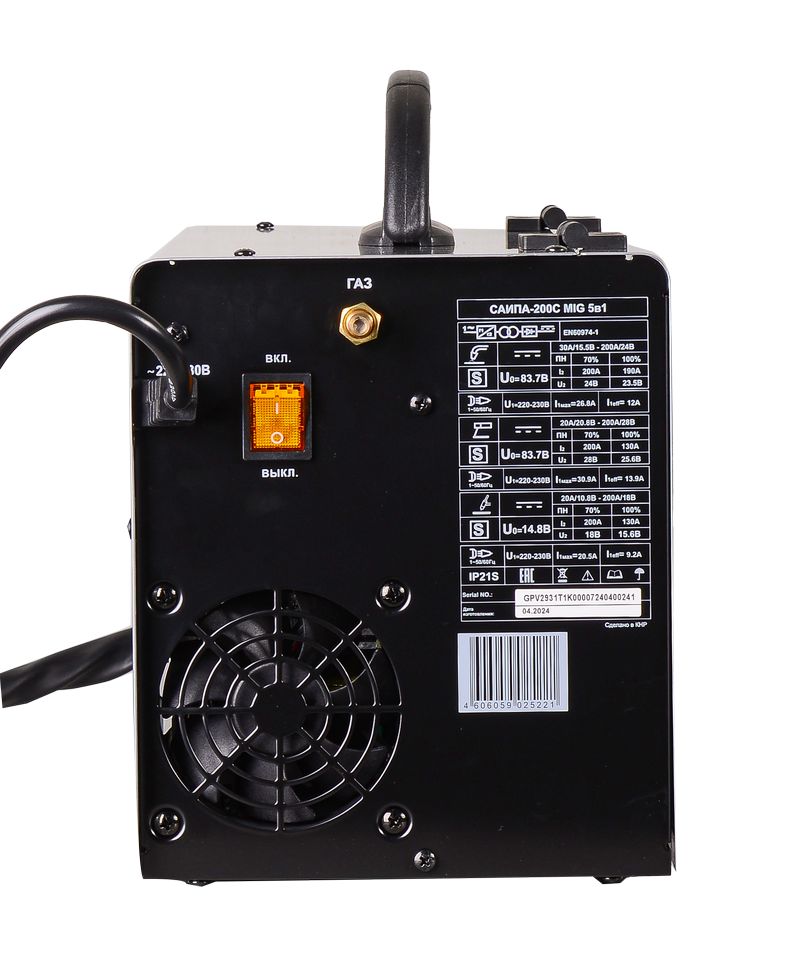 инвертор, полуавтомат, MMA, MIG/MAG, 230±10% В, 15 – 200 А, ПВ - 70%, Ø - 0,6/0,8 /1,0 мм