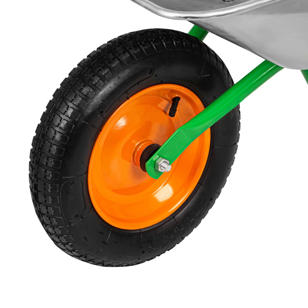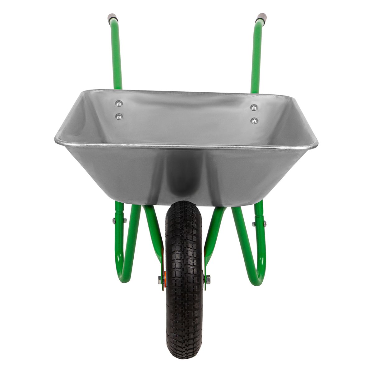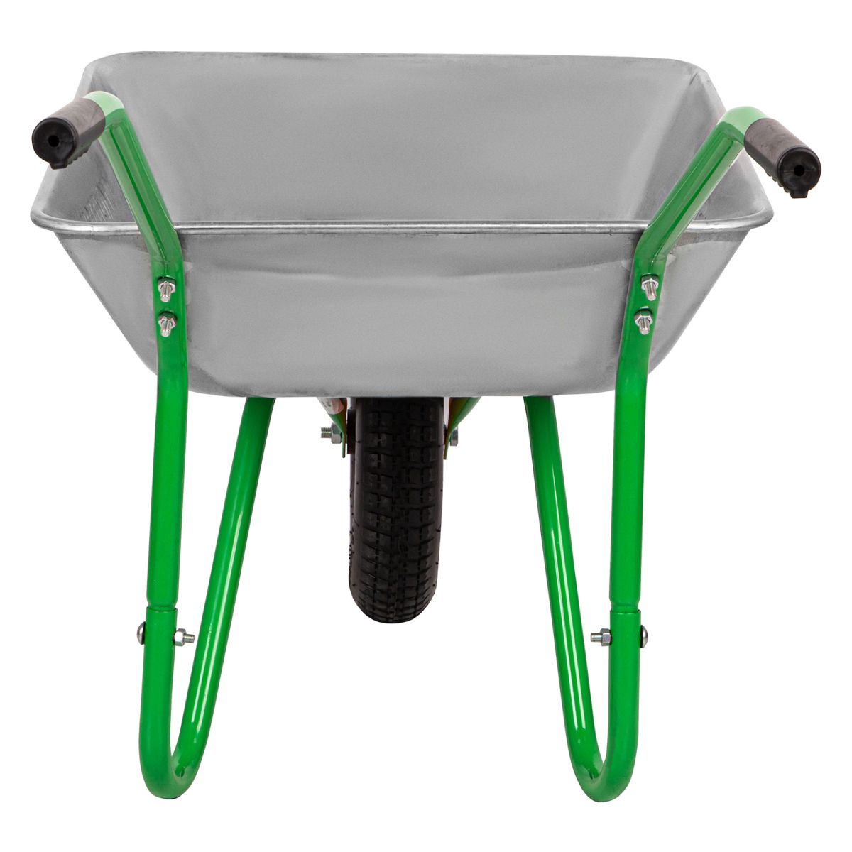 Садовая тачка Сибртех 689144 с объемом кузова 65 л и грузоподъемностью 90 кг предназначена для транспортировки опавших листьев, веток, мусора и других грузов. Толщина стенок корыта составляет 0,6 мм, диаметр трубы рамы — 25 мм, а толщина ее стенок — 1,5 мм, поэтому тачка успешно справляется со своими функциями. Изделие пригодится для поддержания порядка на загородном участке.