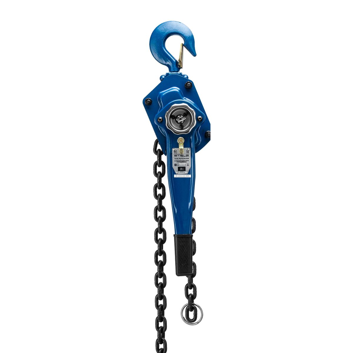 Цепная рычажная таль Stels 51910 используется для поднятия грузов массой не более 3 т на высоту до 1,5 м. Рычажный механизм не требует больших усилий от пользователя. Таль пригодится в автосервисе, на складе или производстве, а также в других местах, где требуется подъем тяжестей без использования электричества.