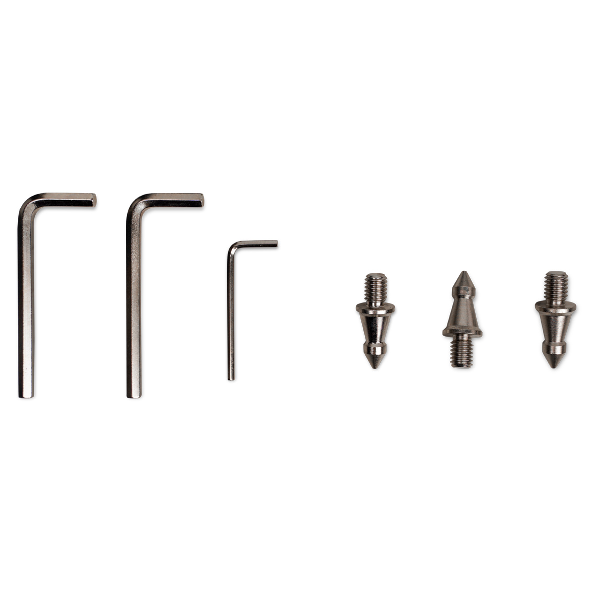 Раздвижные ножки фиксируются при помощи комбинированной системы из винтового механизма и клипсы. Это - оптимальное решение, в котором сочетаются высокая скорость работы и надежность. Заостренные наконечники стоек и прочные упоры помогают крепко установить штатив.