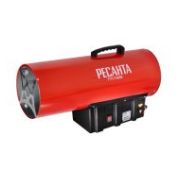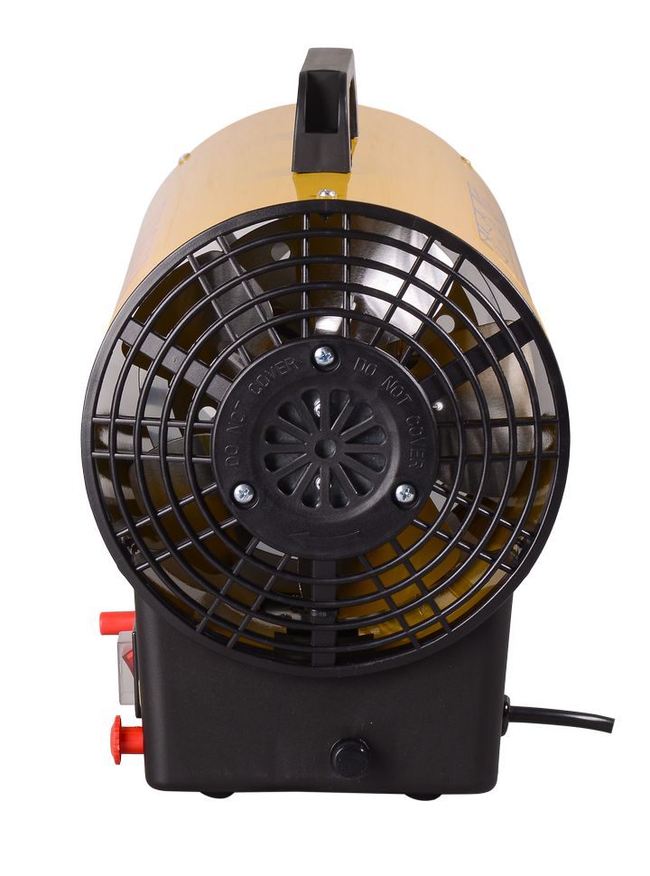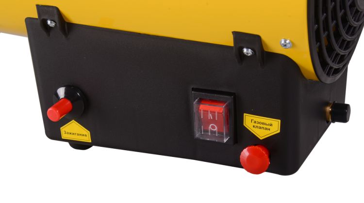 Газовая тепловая пушка мощностью 15 кВт работает на сжиженном топливе: пропане, пропан-бутане, бутане. Баллон со сжиженным газом подключается к регулятору давления через входящий в комплект газовый шланг. Рабочее давление газа должно быть 0,7 Бар. Его расход составляет 1,09 кг/ч. Поджиг топлива производится с кнопки пьезоэлемента. Биметаллический термодатчик контролирует наличие пламени и температуру горения. При перегреве срабатывает защита, и пушка отключается. Для питания автоматики и вентилятора необходимо подключение к бытовой электросети с напряжением 220-230 В.