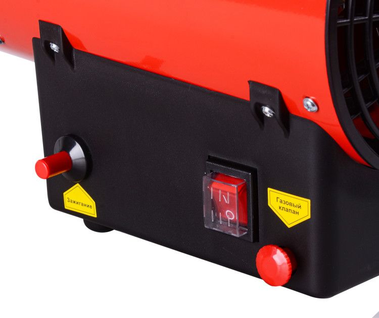 Контроль пламени происходит с помощью биметаллического термодатчика. При его угасании подача газа прекращается. Розжиг осуществляется с помощью пьезоэлемента. Помимо обогрева газовая тепловая пушка выполняет функцию вентилятора при отключении газового шланга. Камера сгорания оснащена горелкой, которая при подаче газа создает высокую температуру. С помощью вентилятора поток воздуха проходит через теплообменник и нагревается. Встроенный термостат препятствует перегреву оборудования, поддерживает необходимую температуру.
