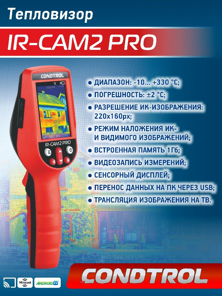 Представляем вашему вниманию CONDTROL IR-CAM 2 Pro с усовершенствованной оптикой и модулем WI-FI. Тепловизор нового поколения с разрешением ИК изображения 220х160px, открывает широкие возможности для мониторинга. С его помощью вы сможете осуществлять фото- и видеосъемку, оперативно производить анализ термограмм. CONDTROL IR-CAM 2 Pro – это высокое качество изображения, широкий набор функций и максимальная достоверность тепловизионных обследований.