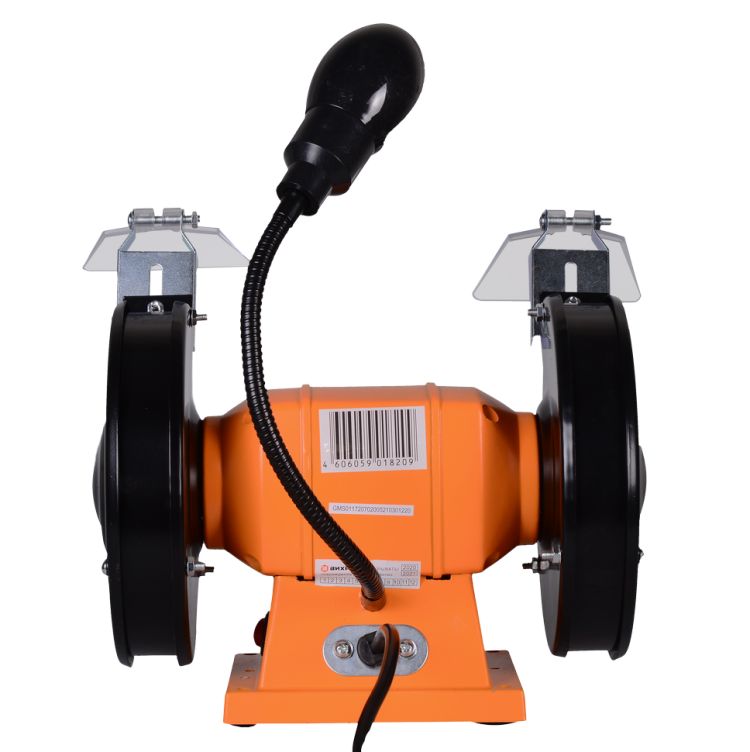 Машина состоит из алюминиевого корпуса, в котором расположен асинхронный электродвигатель. На валу ротора двигателя крепятся шлифовальные круги. Для безопасности на корпусе машины смонтированы защитные кожухи с искрогасителем, прозрачным экраном и рабочим упором. Всегда во время работы используйте эти приспособления.