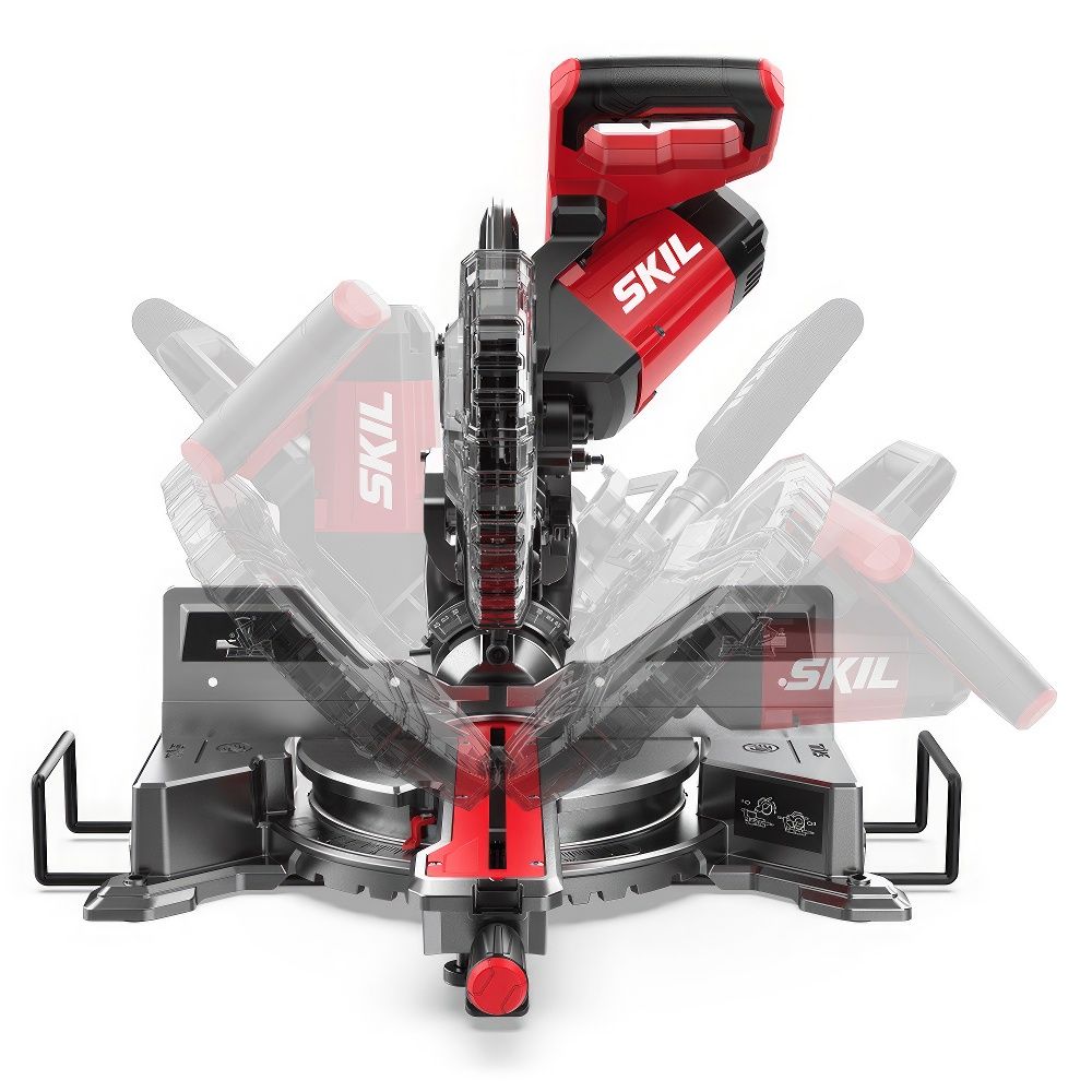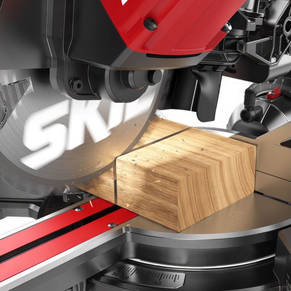 Двойной наклон (Dual Bevel) — позволяет наклонять пильный диск влево и вправо (до 48°), обеспечивая высокую точность и удобство при выполнении угловых резов без переворота заготовки.