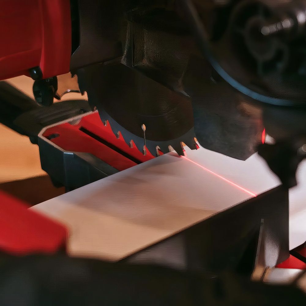 Работает от сети и точно показывает линию пропила. Лазер легко регулируется по положению относительно диска для точного совмещения.Широкий диапазон углов реза