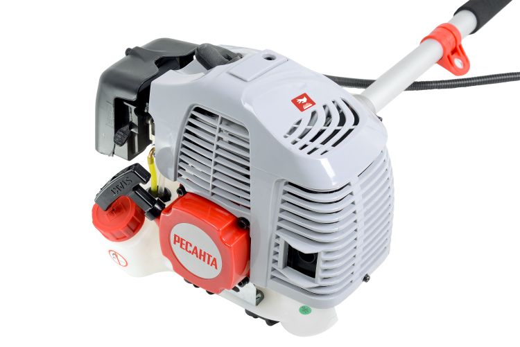 - Бензиновый триммер Ресанта обладает полной автономностью, можно работать где угодно без связи с источниками энергии.