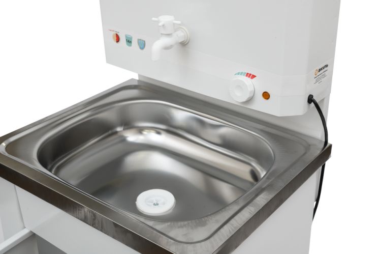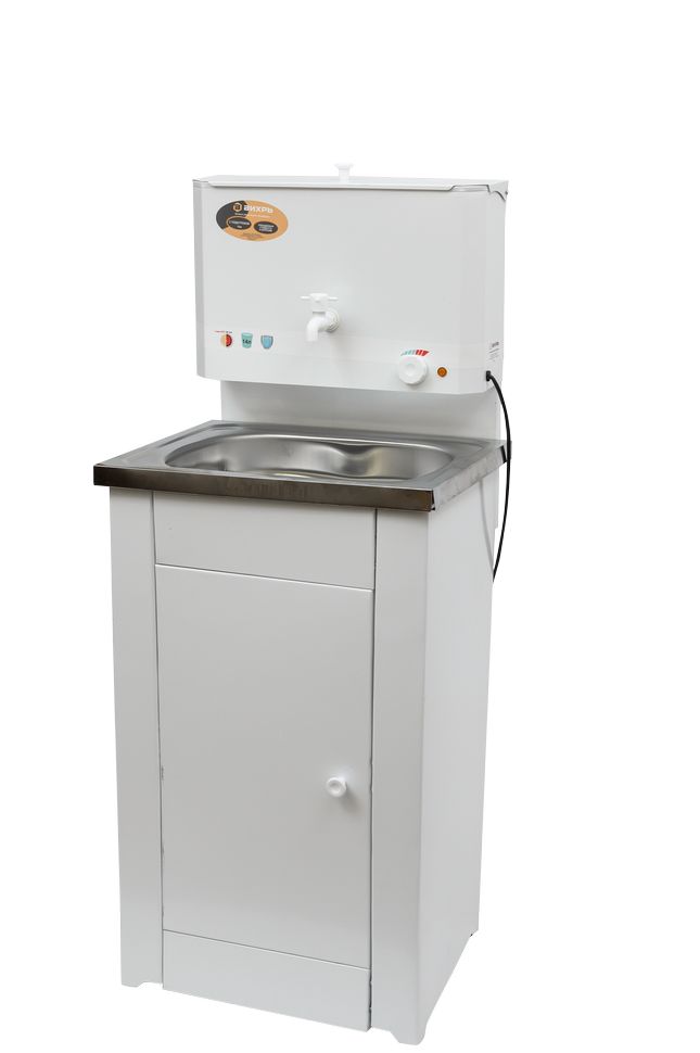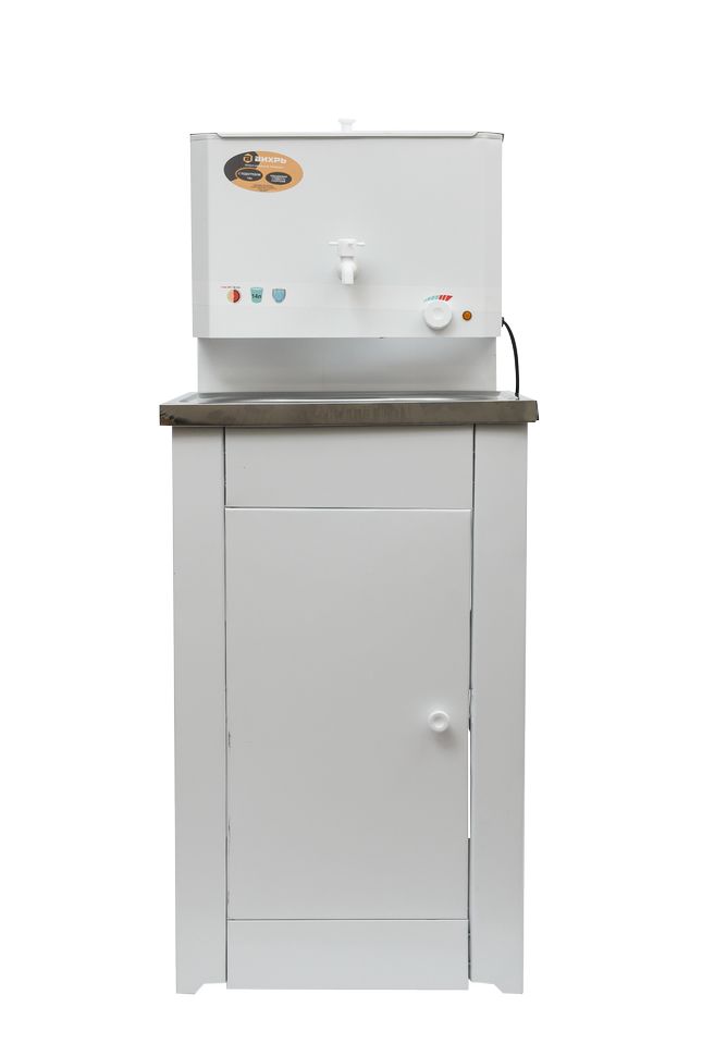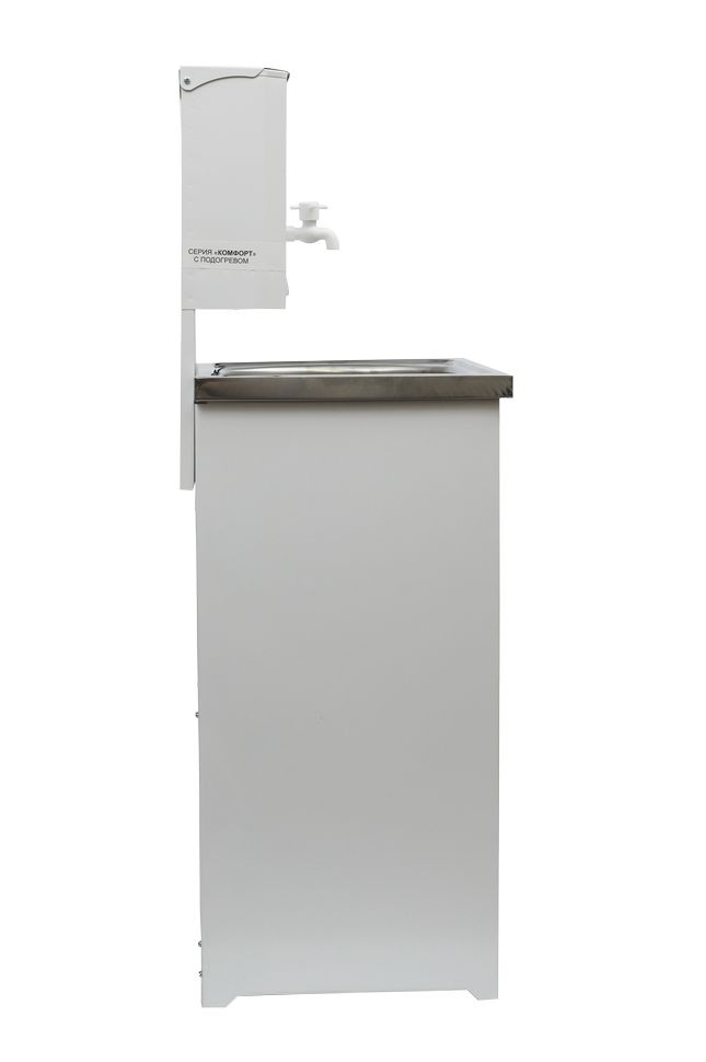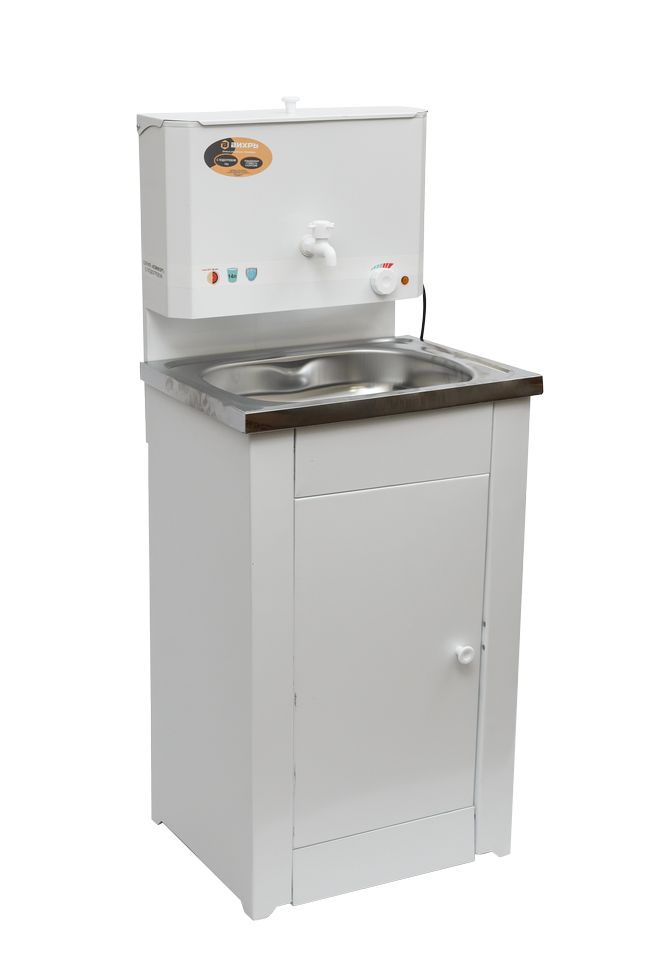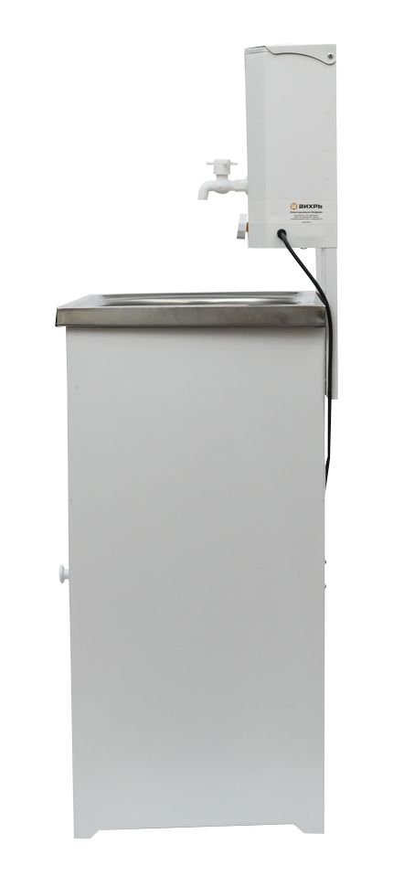Умывальник с подогревом, белого цвета, с тумбой и пластиковой мойкой, от российского производителя ВИХРЬ.