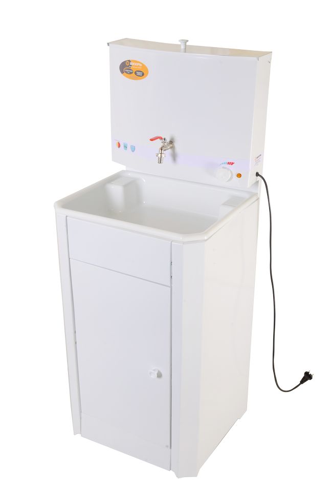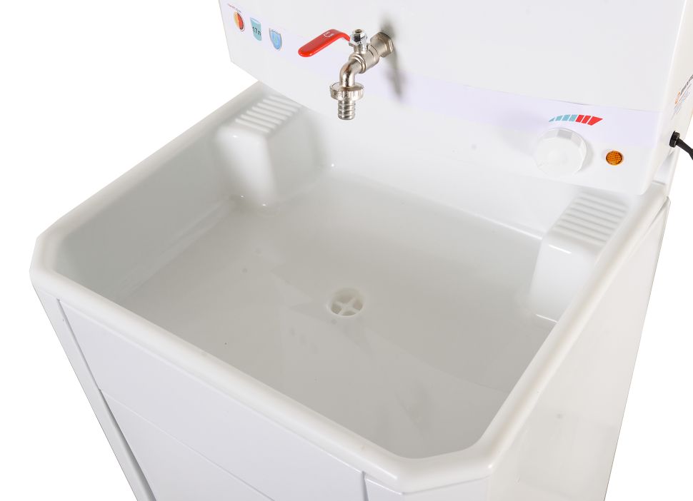 с подогревом, 1300 Вт, белый, кран: металл, мойка: пластик, 17 л, 12 кг