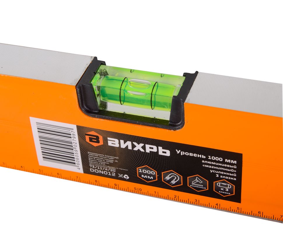 Уровень алюминиевый «Магнитный» 1000мм 3 глазка фрезерованный Вихрь
