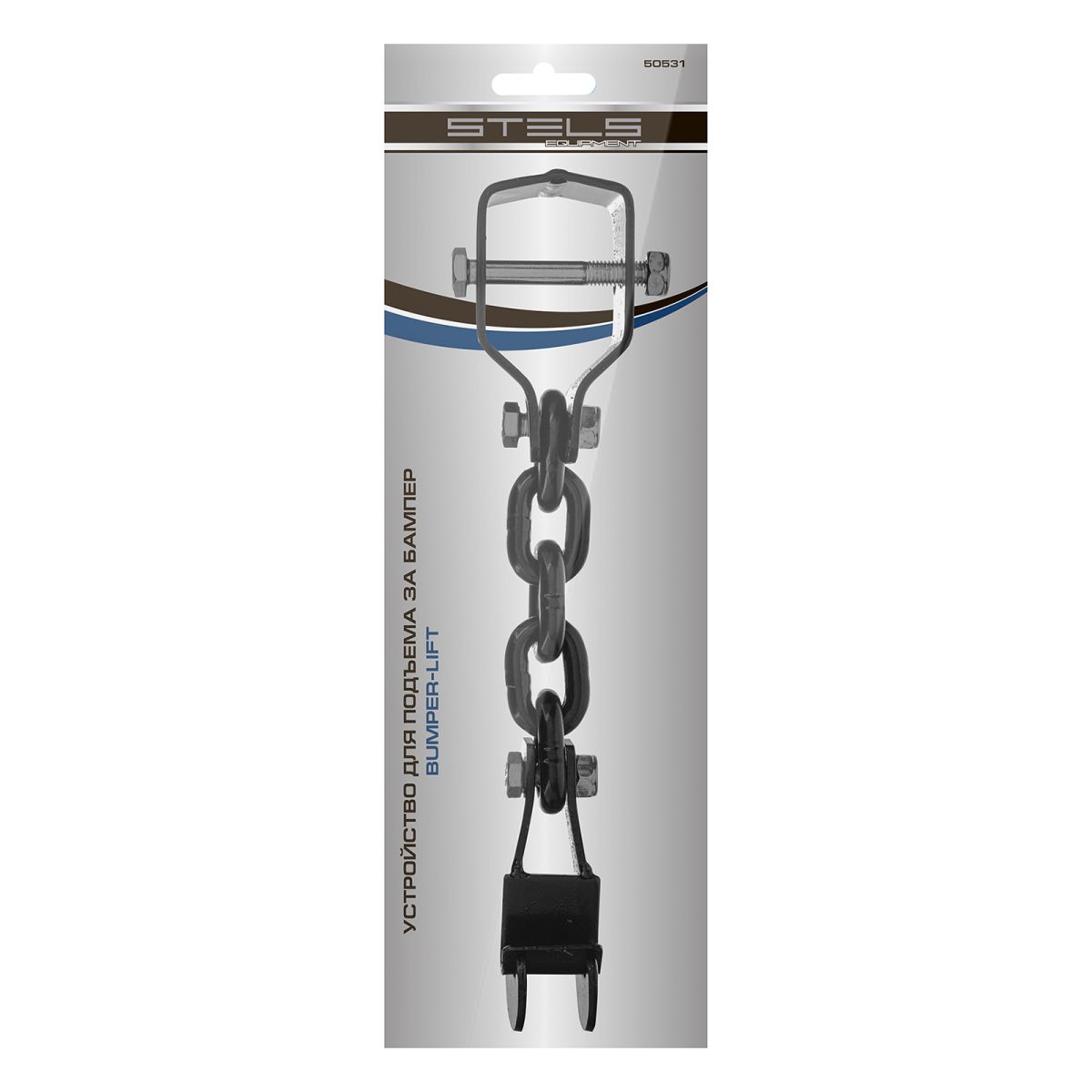 Устройство для подъема за бампер Stels Bumper-Lift 50531 с цепью из 5 звеньев позволяет быстро и аккуратно поднять автомобиль, если высоты подхвата недостаточно для установки реечного домкрата. Поможет освободить засевшую в грязи или кювете автомашину. Пригодится автовладельцам в дальних поездках.