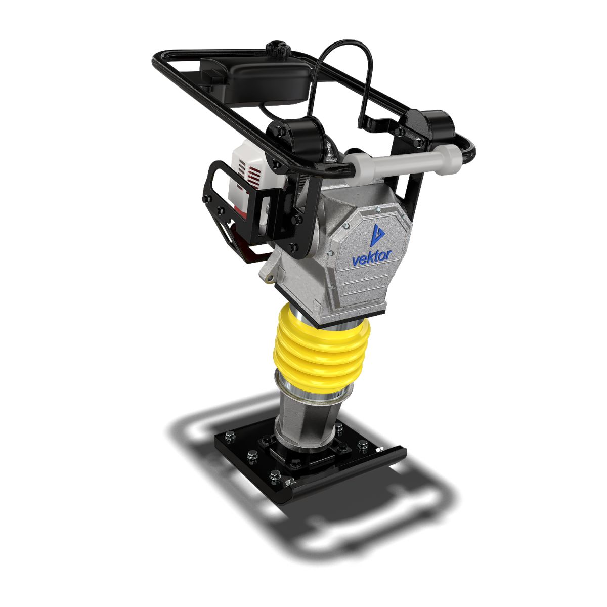 Вибротрамбовка (вибронога) Vektor VRG-72 — устройство с ударным механизмом и минимальной уплотняющей поверхностью, представляющей собой каучуковую подошву размером 330х290 мм. Применение вибротрамбовки Vektor и принцип её действия Используется для уплотнения сыпучих грунтов, связных почв, глины и суглинков, покрытий с небольшим содержанием щебня. Трамбовки особенно актуальны для работы в труднодоступных местах, рядом со стенами зданий, где нельзя использовать более крупную технику. От поступательных движений и вибрационного воздействия трамбовки из слоя удаляется лишний воздух и влага, исчезают пустоты. В зависимости от вида грунта толщина уплотнения варьируется. Эта модель подходит для работы с с толщиной до 400 мм. У трамбовки VRG-72 бензиновый двигатель, поэтому она мобильна и автономна. Однако с ней можно работать только на открытых площадках и в хорошо проветриваемых сооружениях, поскольку от работы двигателя выделяются токсичные выхлопные газы. Особенности и преимущества вибротрамбовки Vektor VRG-72 Оснащена бензиновым четырехтактным двигателем Honda GXR120, разработанным специально для профессиональной строительной техники. Производительность и характеристики аналогичны моделям более дорогого ценового сегмента. По сравнению с VRG-80: были усилены наиболее ответственные узлы и агрегаты — двигатель, трансмиссия и амортизатор; обладает большей упругостью и эффективностью трамбования, т.к. имеет 4 пружины, а не 2; установлены более крупные шестерни трансмиссии, они позволяют передать большее усилие для трамбования на грунт. В комплекте поставляется подробная инструкция на русском языке. Опытные менеджеры СибТоргСервис помогут с подбором вимбротрамбовки (виброноги) под ваши нужды, ответят на любые вопросы по оборудованию, процессу покупки, доставке, установке и пусконаладке, сервисному обслуживанию.